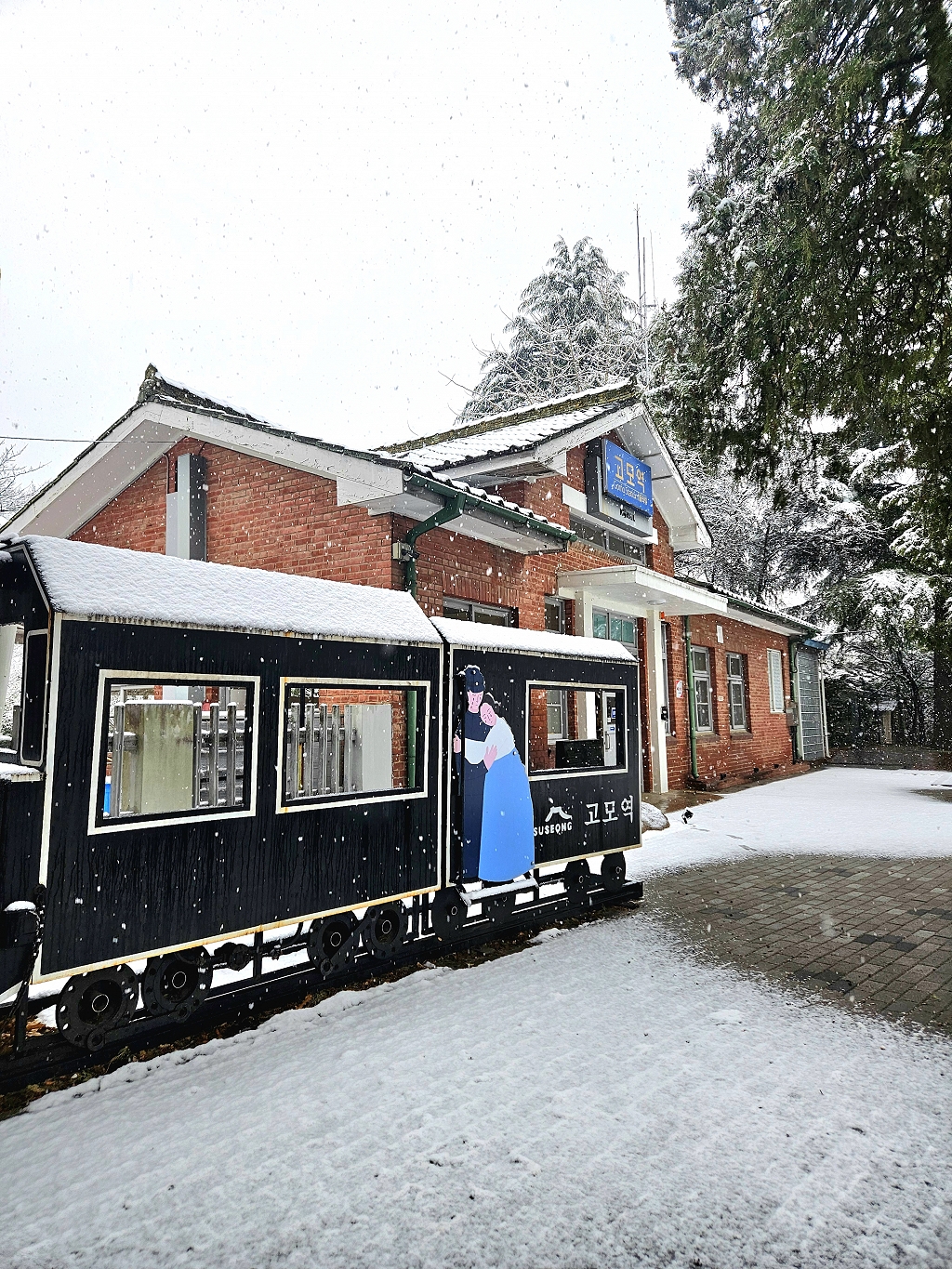 고모역에도 눈이 예쁘게 내렸어요^^
