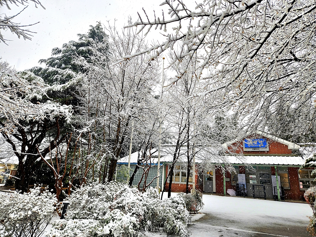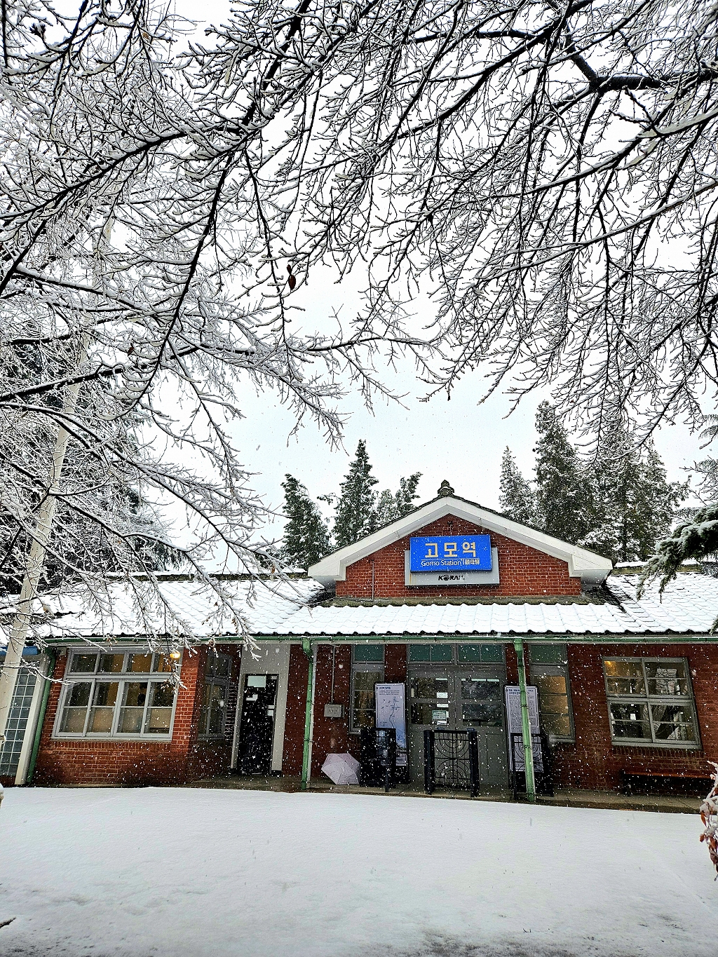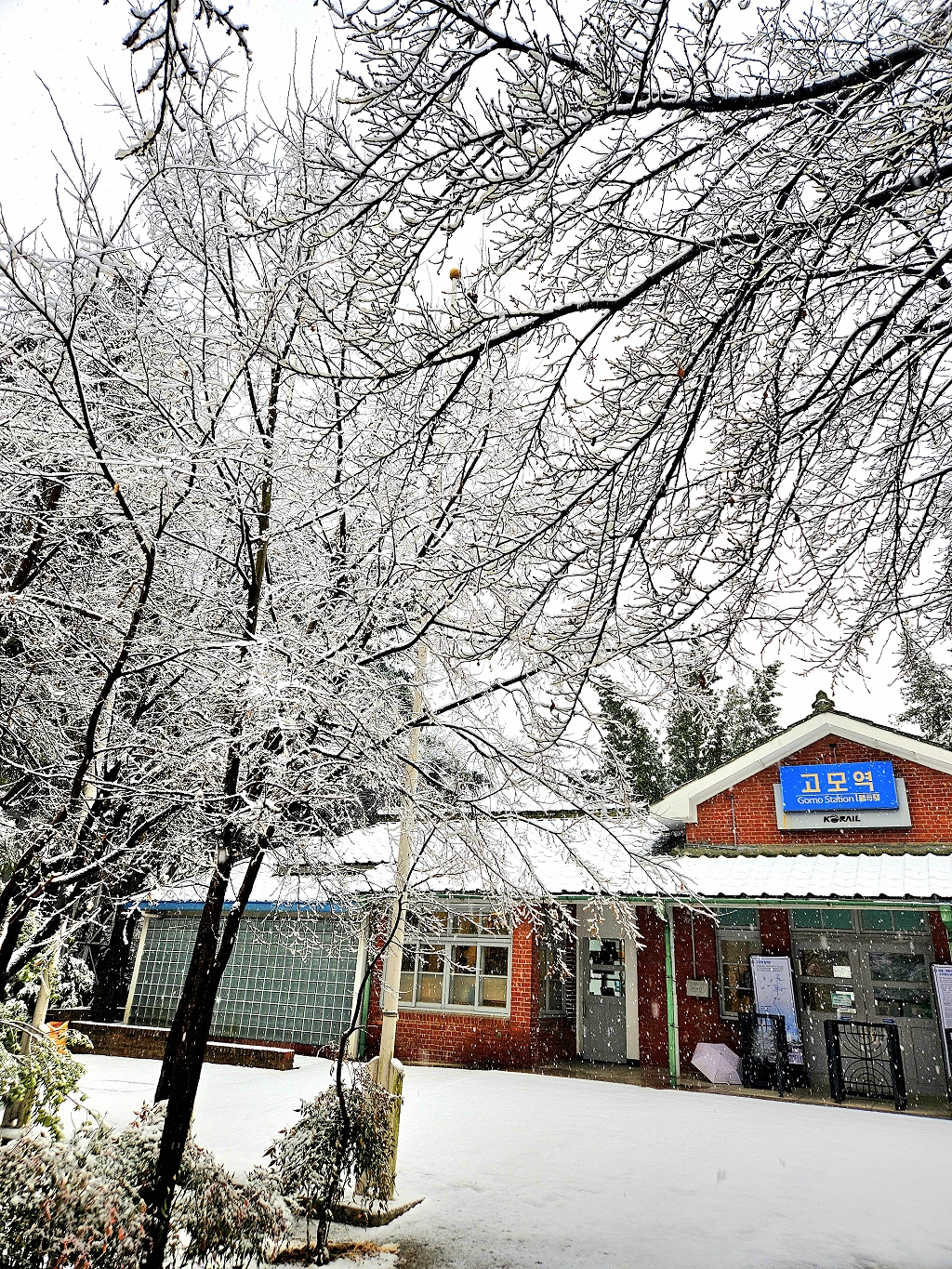 고모역에도 눈이 예쁘게 내렸어요^^